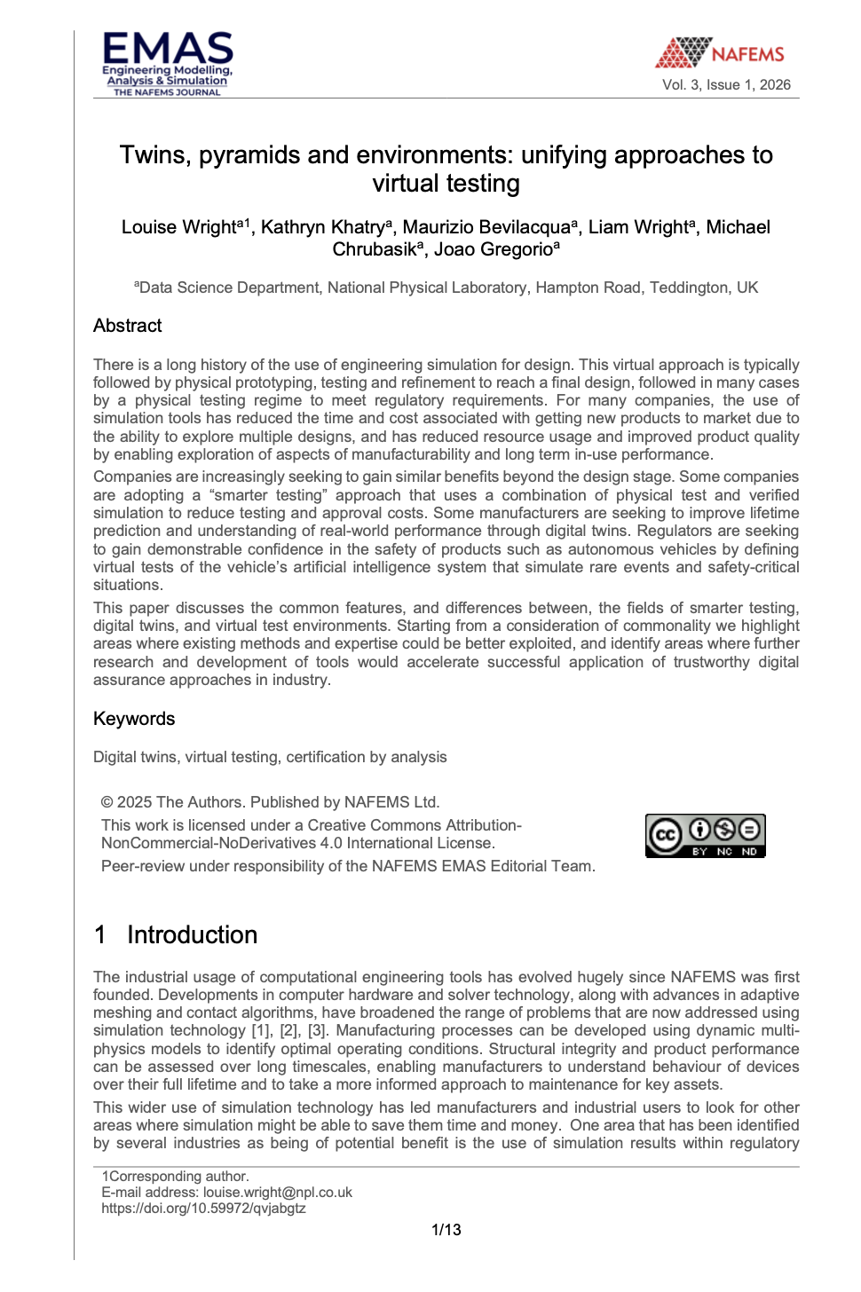 Engineering Modelling, Analysis & Simulation (EMAS) is the NAFEMS Journal, an open-access publication that showcases the latest advancements, research, and novel applications of engineering simulation and related technologies.