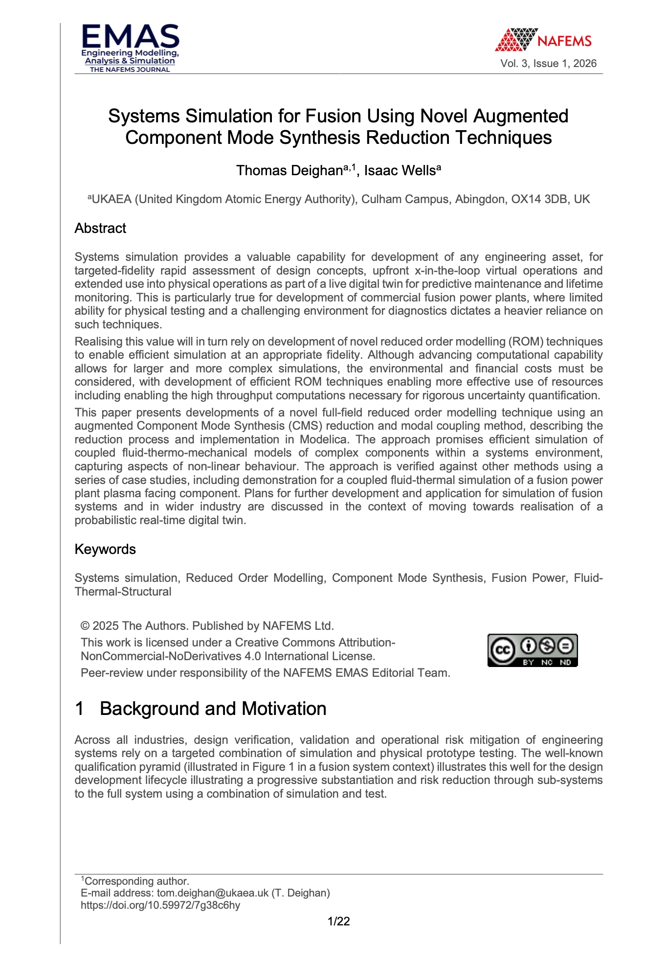 Engineering Modelling, Analysis & Simulation (EMAS) is the NAFEMS Journal, an open-access publication that showcases the latest advancements, research, and novel applications of engineering simulation and related technologies.